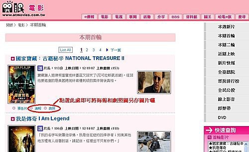 進去開演電影網後,可先選擇要看海報還是劇照,如上紅圈處。