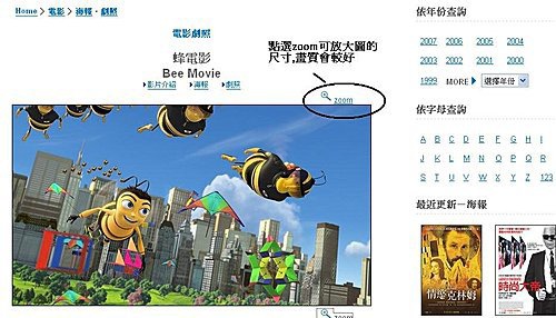 進入海報或劇照後,可在圖的上方點選zoom,讓圖的尺寸放大,抓的圖會比較清析喔!如上圈選處。