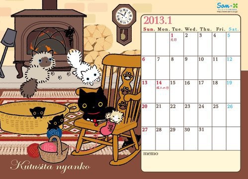 日本San-x家族2013年1月桌布【黑貓】 ~超可愛的唷 !