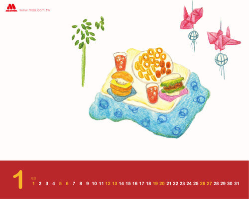 MOS BURGER 摩斯漢堡日本官方網站2013年1月桌布~超可愛的唷 !