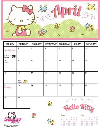 美國三麗鷗2012年4月Hello Kitty家族月曆
